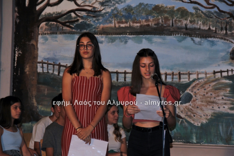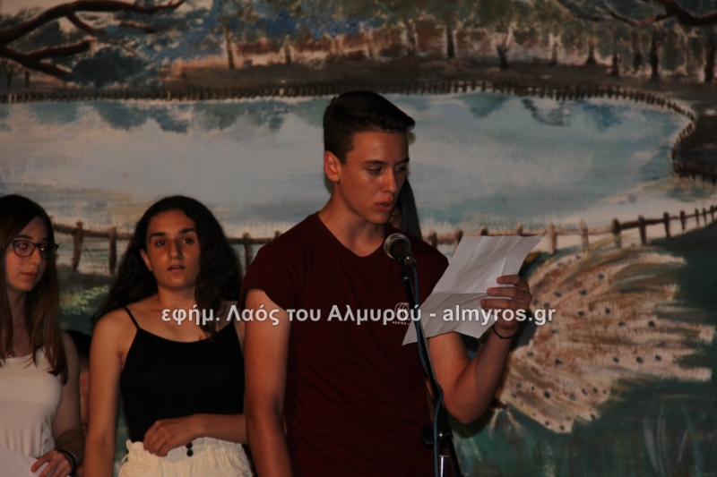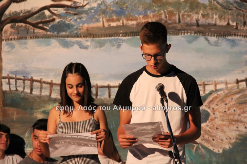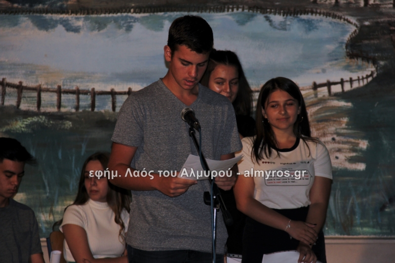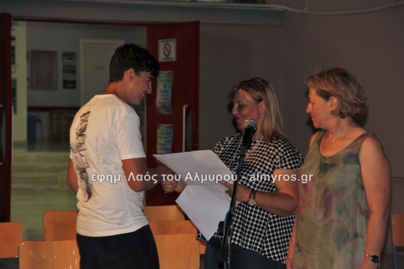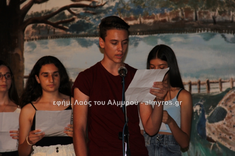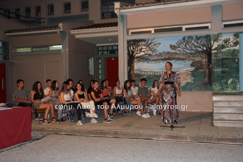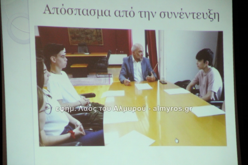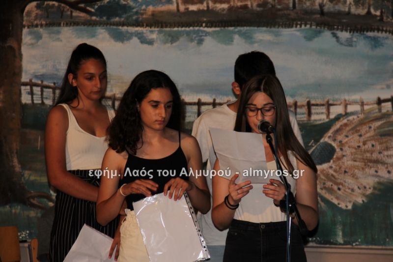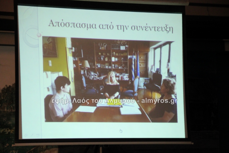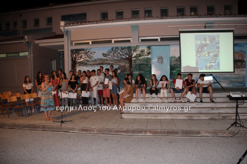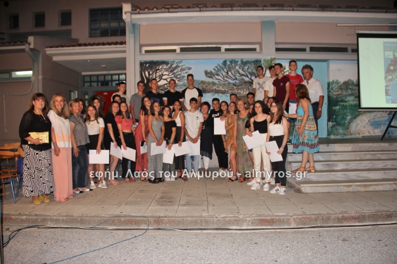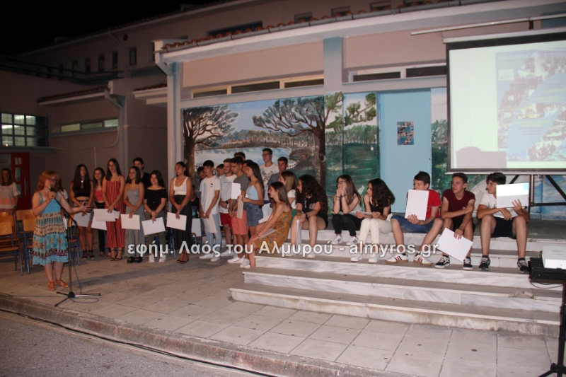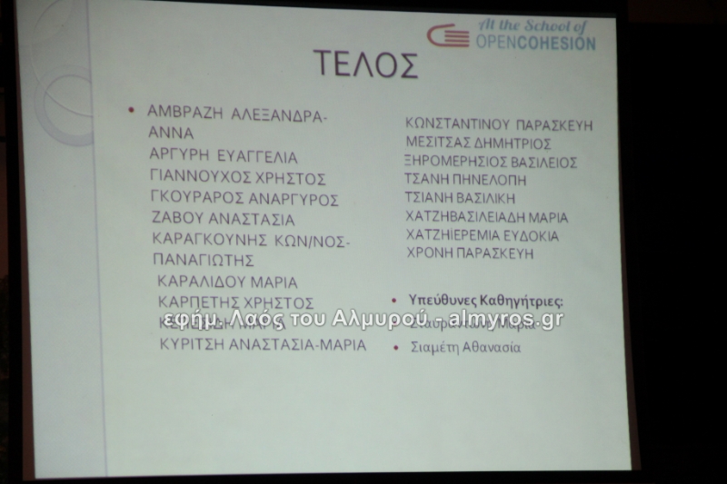Στις ευχαριστίες του Γυμνασίου αναφέρονται: «Οφείλουμε να ευχαριστήσουμε όλους όσους μας βοήθησαν στην έρευνά μας, την Αντιπεριφερειάρχη Μαγνησίας κ. Δ. Κολυνδρίνη, τον Δήμαρχο Αλμυρού κ. Ε. Χατζηκυριάκο και τον Δήμαρχο Αλοννήσου κ. Π. Βαφίνη. Ευχαριστούμε τον Περιφερειάρχη Θεσσαλίας κ. Αγοραστό Κων/νο για την ευκαιρία που μας έδωσε να δηλώσουμε συμμετοχή σε αυτή τη δράση, τον κ. Γαλάνη Βασίλειο και Μίχο Κων/νο υπεύθυνους της Διαχειριστικής Αρχής της Περιφέρειας Θεσσαλίας, την κ. Χριστίνα Τσέλιου υπεύθυνη της ομάδας Asoc Ελλάδος στο Υπ. Ανάπτυξης για την πολύτιμη βοήθειά τους. Ευχαριστούμε τον έντυπο και ηλεκτρονικό τύπο για την προβολή και κάλυψη της εκδήλωσής μας και τον κ. Κ. Κολώνη για την ηχητική κάλυψη».