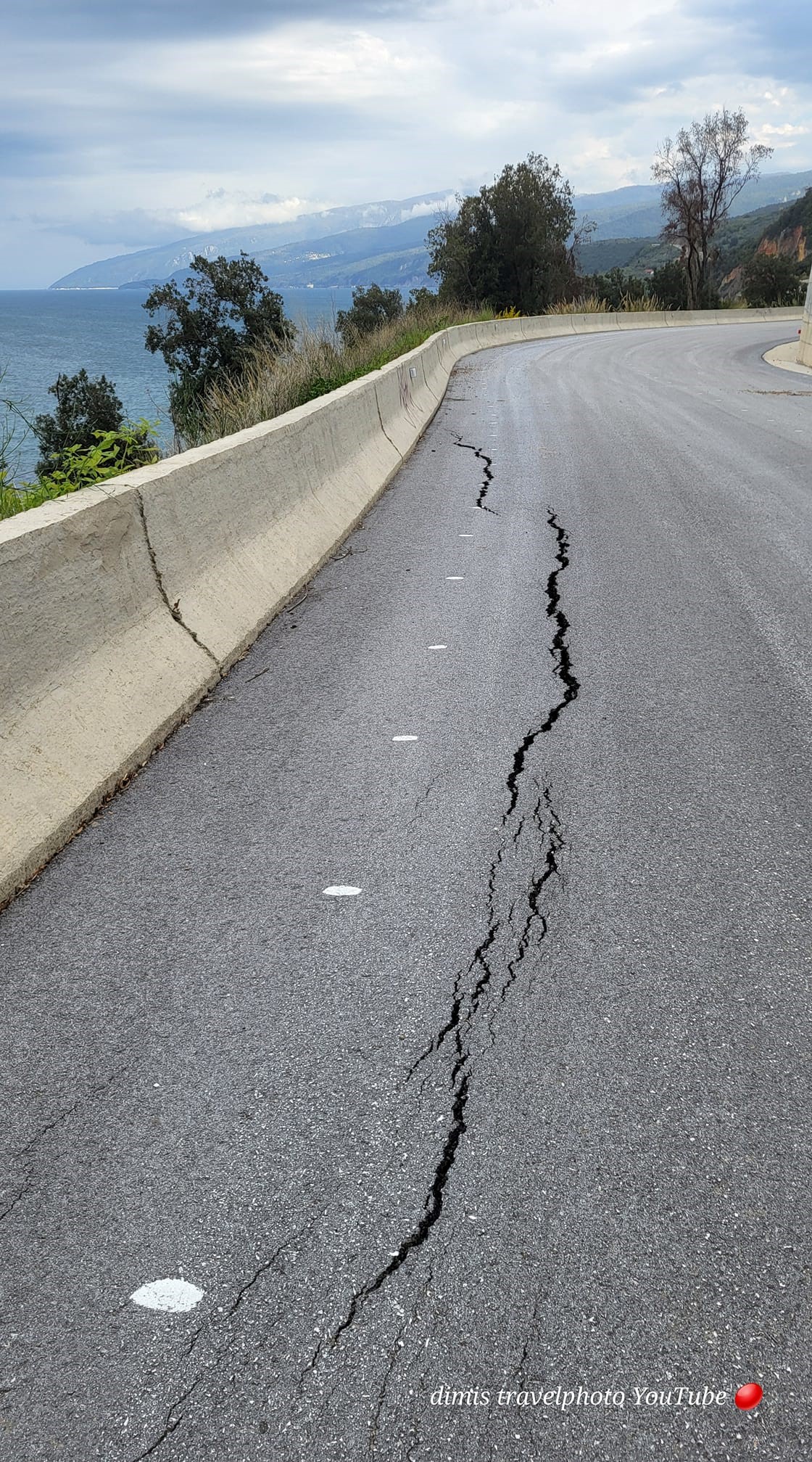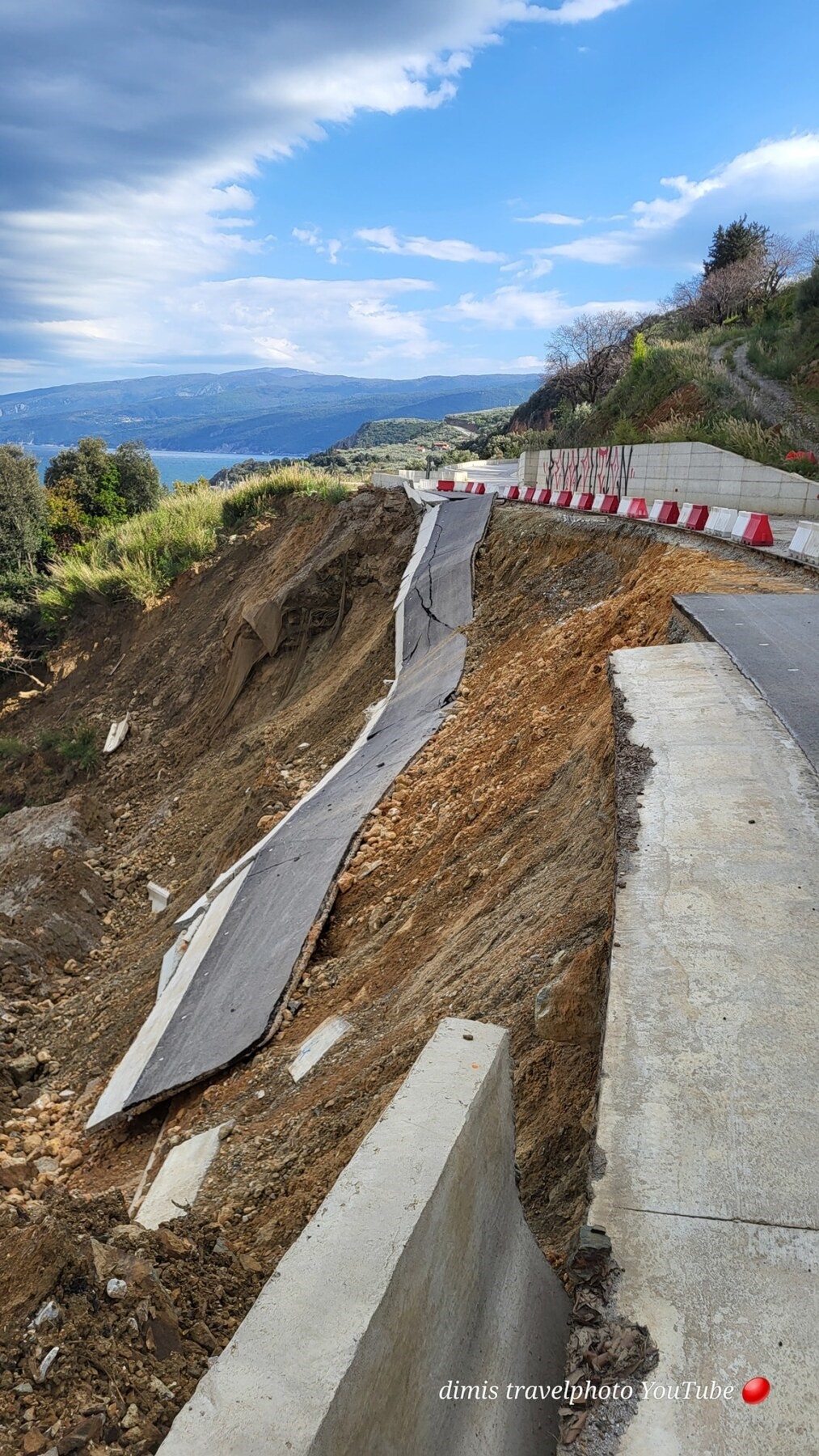 Τα προβλήματα αυτά, έδειχναν ότι δεν έγιναν όλα τα αναγκαία τεχνικά έργα αντιστήριξης με τσιμεντένιους τοίχους, κλπ., ώστε να αποφευχθούν οι επικίνδυνες καταπτώσεις στο οδόστρωμα. Αρχές Απριλίου 2025, λίγο μετά τον Ρακοπόταμο και λίγο πριν τα «Λατομεία», ο δρόμος έπεσε τελείως στο γκρεμό όπως φαίνεται και στη φωτογραφία, ενώ σε άλλα σημεία άρχισε να σκίζεται η άσφαλτος, γεγονός που επιβεβαιώνει την προηγούμενη καταγγελία μας ότι δεν έγιναν όλα τα αναγκαία τεχνικά έργα, ώστε να είναι ασφαλής ο δρόμος.