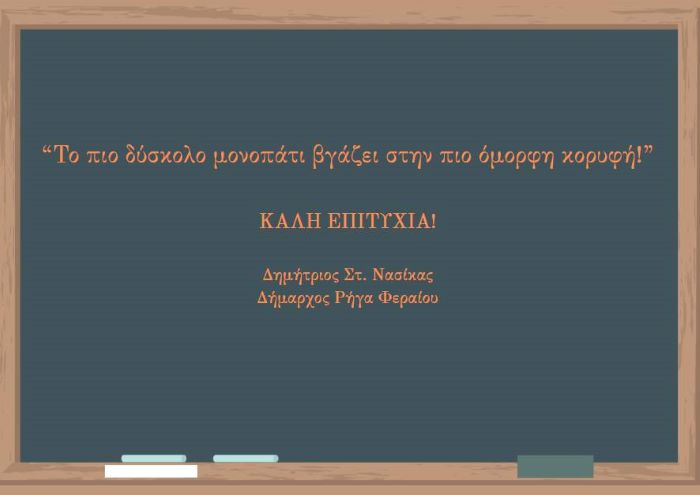 Ως Δήμαρχος, σας στέλνω το μήνυμα πως οι Πανελλαδικές Εξετάσεις δεν καθορίζουν το σύνολο της πορείας σας, αλλά αποτελούν ένα βήμα στον δρόμο της αυτογνωσίας και της προσωπικής σας ανάπτυξης.