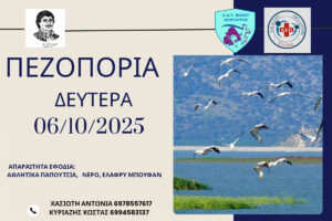 Πληροφορίες: Χασιώτη Αντωνία 6978557617 – Κυριαζής Κώστας 6994583137.