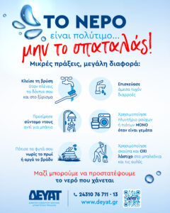 «Μη σπαταλάς», «Μην πετάς», «Μην αφήνεις» από τη ΔΕΥΑΤ