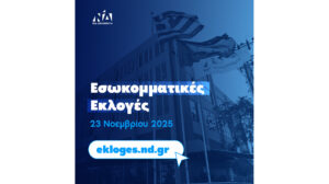 Οι εσωκομματικές εκλογές για την ανάδειξη των Προέδρων ΔΕΕΠ και ΔΗΜΤΟ, των μελών των Διοικητικών Συμβουλίων των κομματικών οργανώσεων και των συνέδρων για το προσεχές Συνέδριο της Νέας Δημοκρατίας, θα διεξαχθούν πανελλαδικά την Κυριακή 23 Νοεμβρίου 2025.