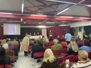 Στη συνέχεια, τον λόγο έλαβε ο Σεβασμιώτατος, ο οποίος, στον σύντομο χαιρετισμό του, αναφέρθηκε στη σημασία της ευαισθητοποίησης και της κοινής δράσης απέναντι στα φαινόμενα βίας, τονίζοντας ότι: «Πρέπει κι εμείς κάτι να κάνουμε ώστε να διώξουμε τον φόβο και να φέρουμε τα πράγματα όπως πρέπει για να αντιμετωπίσουμε αυτές τις καταστάσεις». Επεσήμανε, επίσης, πως «έχουμε ξεκινήσει μια πολύτιμη προσπάθεια, μαζί και με εκπροσώπους των φορέων, να δημιουργήσουμε ένα δίκτυο στο οποίο θα συμμετάσχει και η Εκκλησία, με στόχο να φέρουμε στην επιφάνεια το πρόβλημα, να ενισχύσουμε την πρόληψη και την ενημέρωση και να κάνουμε ό,τι περνάει από το χέρι μας ως τοπική κοινωνία, ώστε να περιορίσουμε στο ελάχιστο αυτές τις περιπτώσεις και να σταθούμε κοντά στα θύματα της βίας».