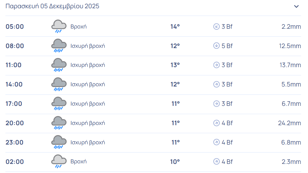 Πρόβλεψη για 50-70mm βροχής για το Κεραμίδι και το Βένετο την Παρασκευή