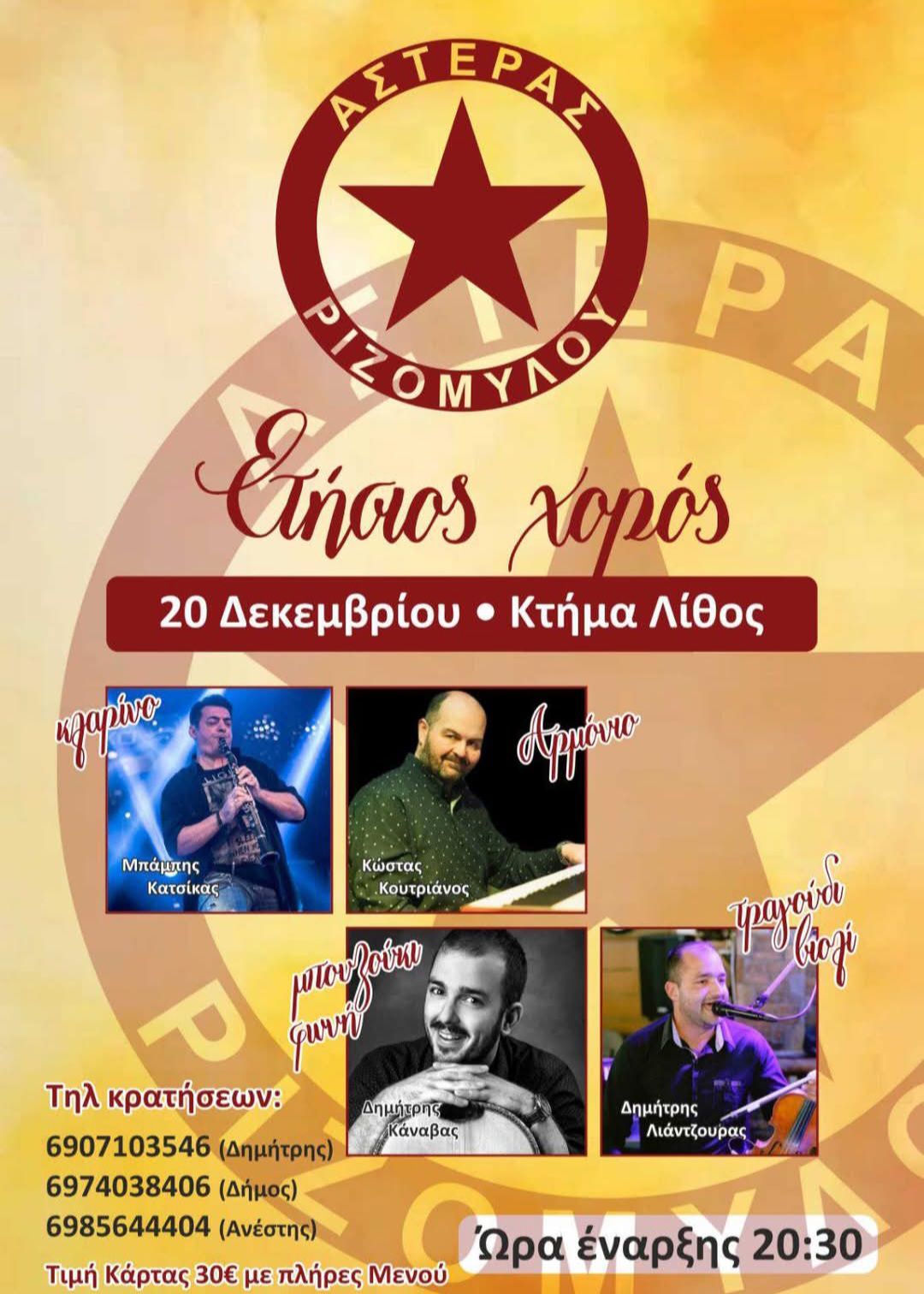 Ο Αστέρας Ριζομύλου διοργανώνει χειμερινό ετήσιο χορό