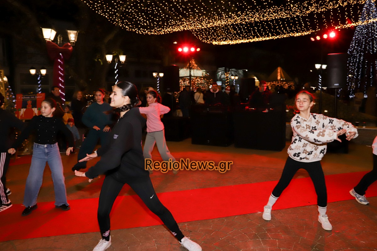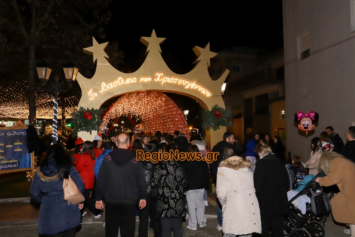 Μετά την φωταγώγηση του δέντρου και τα εντυπωσιακά βεγγαλικά, ακολούθησε πορεία μέχρι την πύλη του Βασιλείου των Χριστουγέννων όπου επίσημα εγκαινιάστηκε από τον Δήμαρχο κ. Δημήτρη Νασίκα το βασίλειο και ο χώρος με τις θεματικές, φωτεινές πυραμίδες. Οι DJ μας περίμεναν για ένα χορευτικό πάρτι που κράτησε μέχρι τις πρώτες πρωινές ώρες.