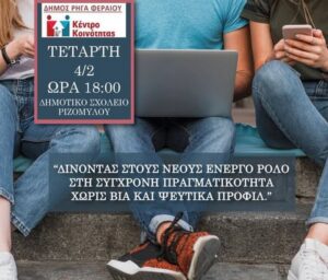 “Δίνοντας στους νέους ενεργό ρόλο χωρίς βία και ψεύτικα προφίλ”: εκδήλωση στο Ριζόμυλο