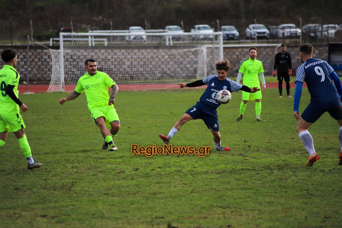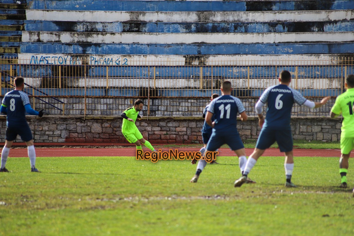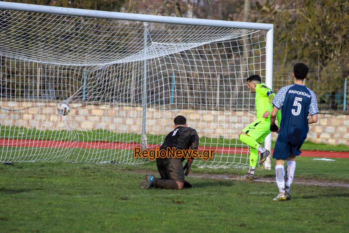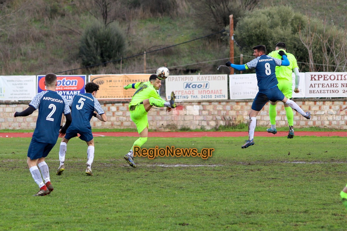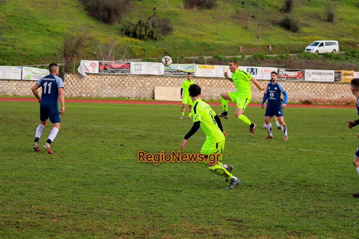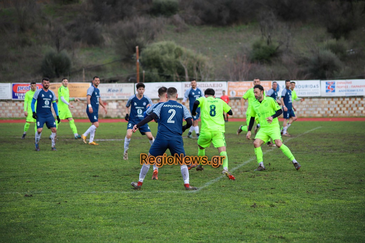 Ακρόπολη: Βίτσος, Πούλιος, Πασσιάς (75′ Γκατζούνας), Κόκκας, Μπέκος, Ζαρίφης (46′ Παπούλιας), Κόπο, Αν. Κολυμήτρας, Παγώνης (64′ Κονσταντίν), Πατσής (80′ Χαρ. Τσούτσας), Μαυρίδης (64′  Χρ. Τσούτσας).