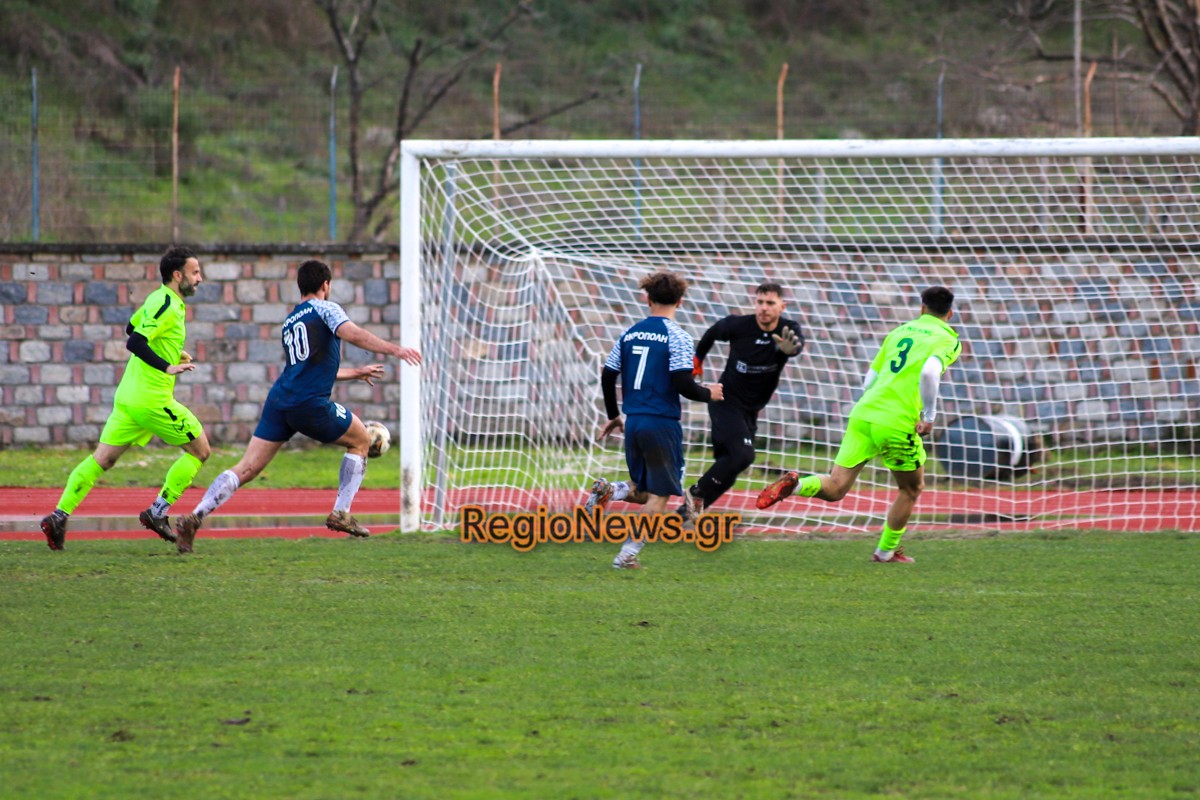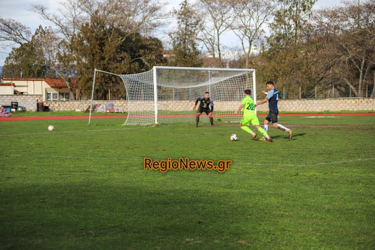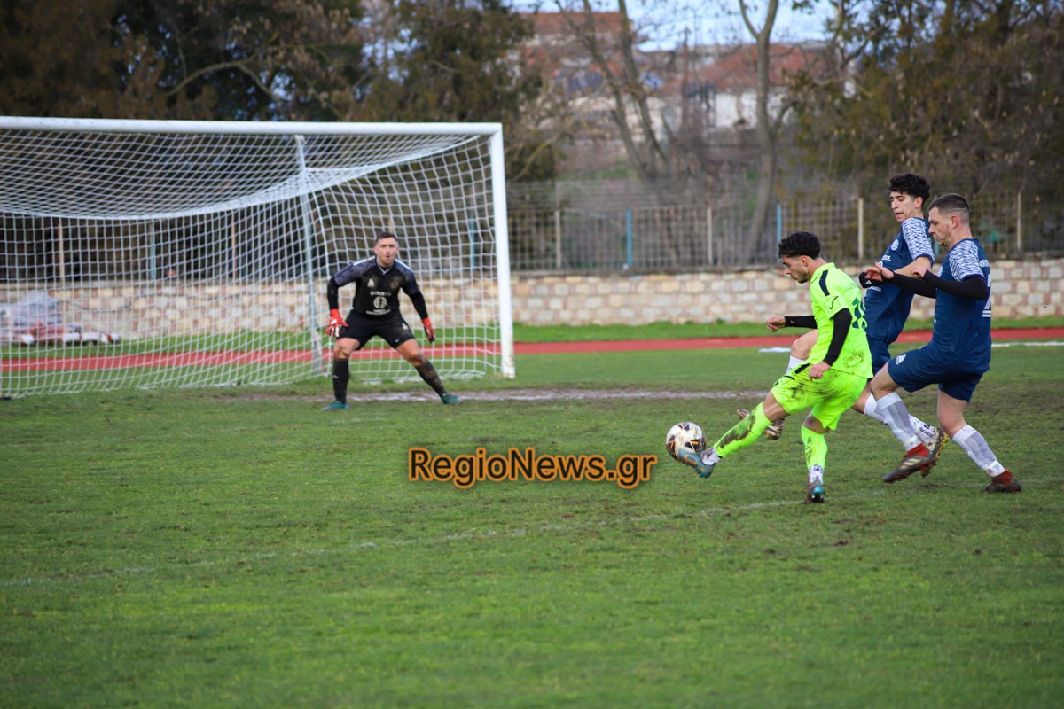 Ο Σιαφαρίκας, παίκτης-αποκάλυψη στον φετινό Ρήγα, άνοιξε το σκορ με κεφαλιά στο 20ό λεπτό ύστερα από σέντρα του Κατσαγεωργίου και τα άλλα τέρματα σημειώθηκαν στα τελευταία λεπτά του πρώτου μέρος, στο 43ο με σουτ του Γάρου (από κοντά, ριμπάουντ σε απόκρουση του Βίτσου σε σουτ του Σιαφαρίκα) και στο 45ο με κεφαλιά του Αλεξίου.