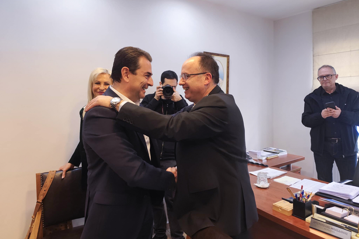 Τα μέτρα στήριξης της επιχειρηματικής κοινότητας, αλλά και της ελληνικής κοινωνίας στο «ρευστό» περιβάλλον που έχει δημιουργήσει η εμπόλεμη κατάσταση στη Μέση Ανατολή εξέτασαν ο γραμματέας της Πολιτικής Επιτροπής της ΝΔ κ. Κωνσταντίνος Σκρέκας και ο γραμματέας Οργανωτικού του κόμματος κ. Στέλιος Κονταδάκης, που συναντήθηκαν το πρωί της Τρίτης 10 Μαρτίου με τα μέλη της Διοικητικής Επιτροπής του Επιμελητηρίου Μαγνησίας, στο περιθώριο επίσκεψής τους στο Βόλο.