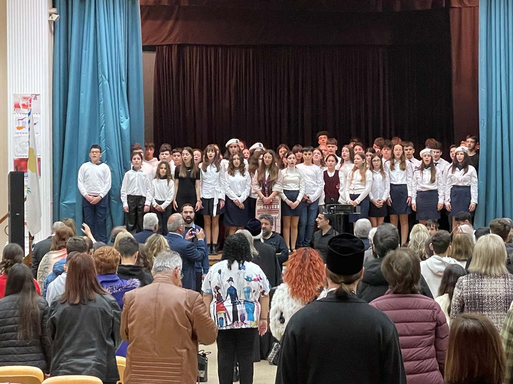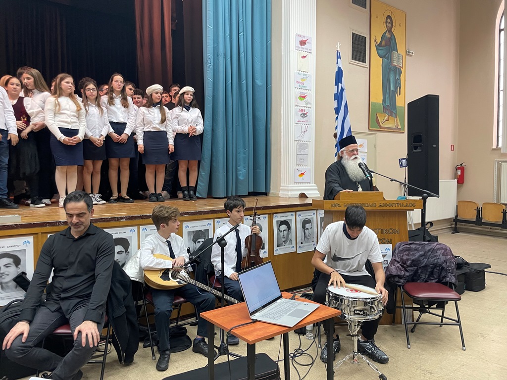 Στην εκδήλωση του 2ου Πρότυπου Γυμνασίου Βόλου για τον πανηγυρικό εορτασμό της επετείου της 1ης Απριλίου 1955–1959, που πραγματοποιήθηκε χθες στο Πνευματικό Κέντρο της Ιεράς Μητροπόλεως Δημητριάδος και Αλμυρού, παραβρέθηκε ο Σεβασμιώτατος Μητροπολίτης Δημητριάδος κ. Ιγνάτιος Δημητριάδος, καθώς και εκπρόσωποι των εκπαιδευτικών και τοπικών αρχών και φορείς της πόλης.