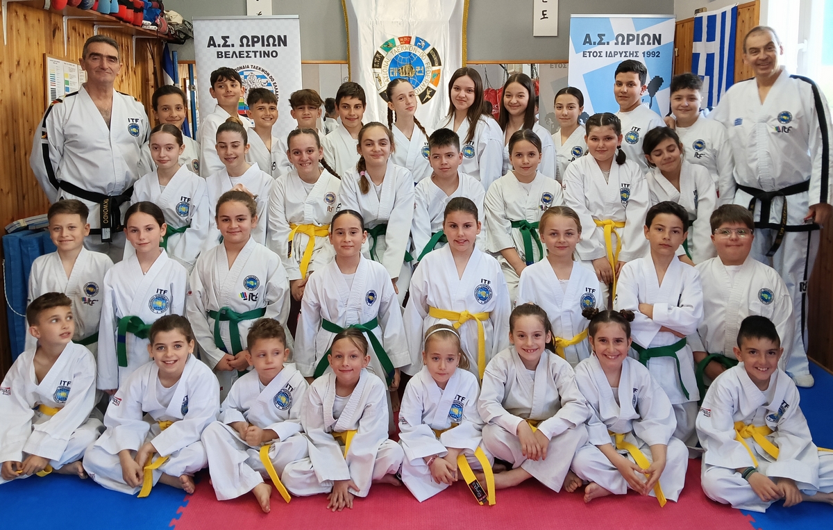 Το Σάββατο 7 Μαρτίου 2026 στις αθλητικές εγκαταστάσεις του Α.Σ Ωρίων Bελεστίνου πραγματοποιήθηκαν σε συνεργασία με την Αθλητική ομοσπονδία Taekwon-do Ελλάδος, οι προαγωγικές εξετάσεις Ζωνών των αθλητών του Taekwon-do ITF. Οι αθλητές εξετάσθηκαν στα Tul (σκιαμαχία) η οποία αναπτύσσει και βελτιώνει την τεχνική, την δύναμη, τον ρυθμό, την αναπνοή και την ισορροπία, στις μονομαχίες μεταξύ δύο αθλητών, στις τεχνικές αυτοάμυνας σε άοπλους αντιπάλους, σε λαβές – κλειδώματα αρθρώσεων, σε πτώσεις-ρίψεις, σε τεχνικές θραύσεων πλακιδίων , σε εναέριες τεχνικές θραύσεων πλακιδίων, σε αμυντικές και επιθετικές τεχνικές λακτισμάτων και χεριών, στην ιστορία του Taekwon-do ITF καθώς και στην φιλοσοφία και τα δόγματα που πηγάζουν από αυτή την όμορφη Πολεμική Τέχνη που εφαρμόζοντας συγκεκριμένους κανονισμούς γίνεται ένα ωραίο Μαχητικό Άθλημα για όλες τις ηλικίες.